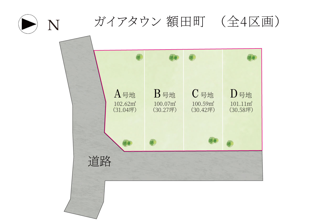 ガイアタウン額田町は、全4区画の新規分譲地です。